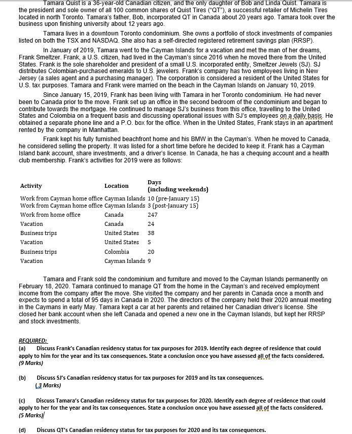 Tamara Quist Is A 36 Year Old Canadian Citizen And Chegg Com